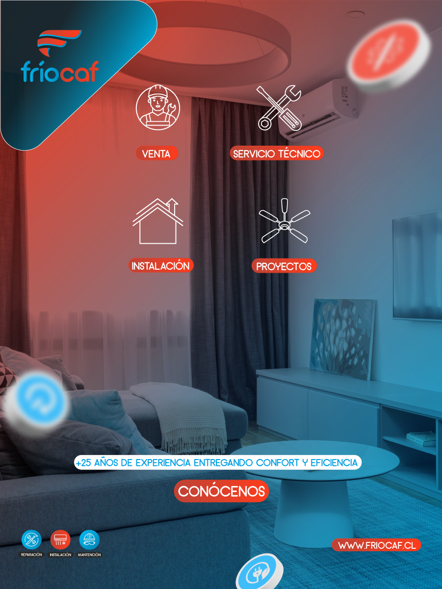 En FríoCaf contamos con más de 25 años de experiencia, destacando por nuestra transparencia y formalidad comercial. Hemos participado en proyectos públicos y privados de alto nivel, lo que respalda nuestra capacidad técnica. Ofrecemos cobertura en toda la Región Metropolitana y nos proyectamos a otras regiones con el mismo estándar de calidad y compromiso.